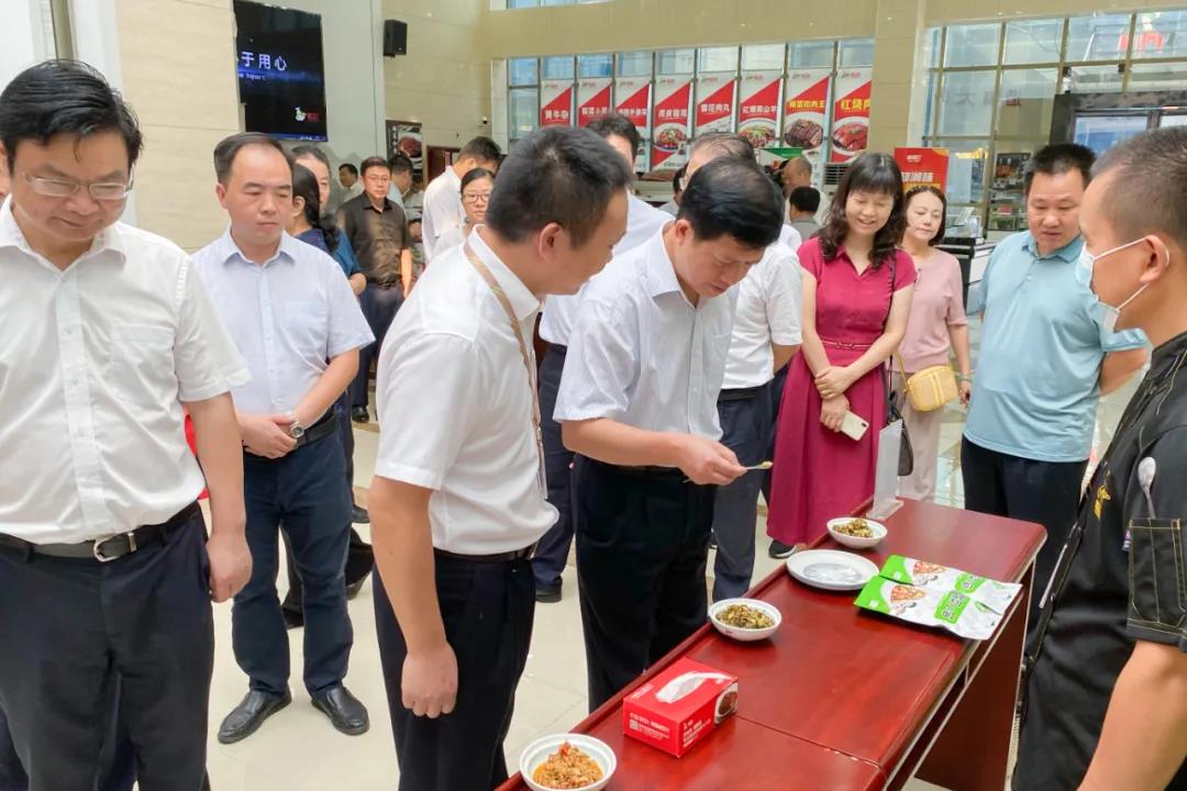 一行人参观至直播间,平博在线_平博(中国)项目部扣肉分厂产品经理林辉彬正在展示产品出品,扣肉出锅、倒扣入盘,行云流水的操作让参观众人惊艳不已,袁厅长笑谈:“看着就很棒了,”同行领导也纷纷赞赏,造型色泽都很不错、很有食欲,林大师向众人介绍了平博在线_平博(中国)梅菜扣肉简单的食用步骤,平博在线_平博(中国)梅菜扣肉这款产品经久不衰,其中很大一部分原因是因为我们有自己的无沙免洗梅干菜基地,有独特的香味,再搭配上高品质的五花肉,肥而不腻、回味无穷。